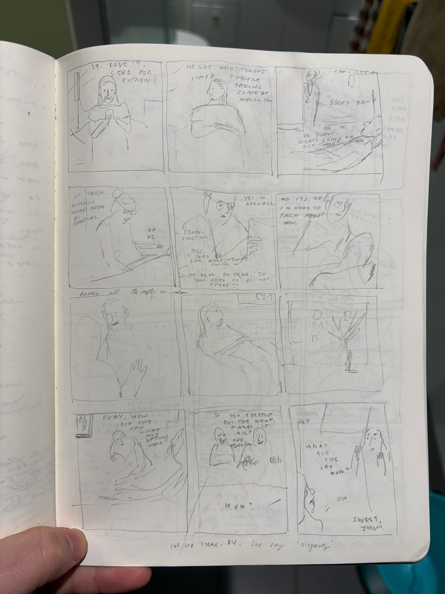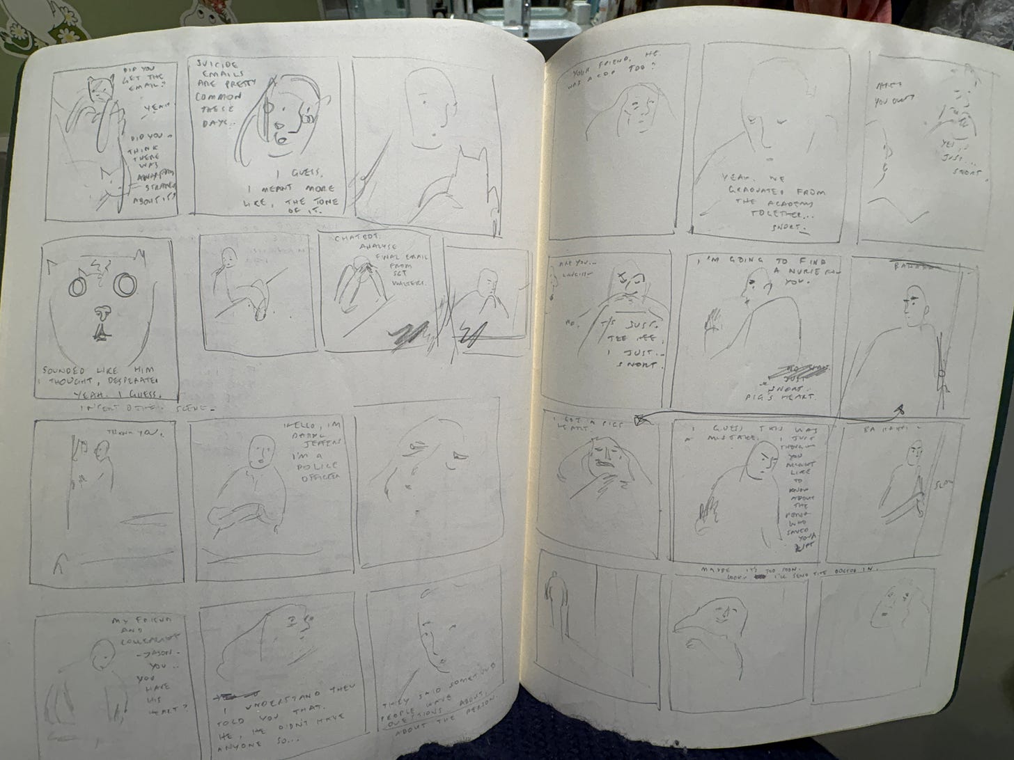 Anyway, the real panel happened later at the pub. Another artist was talking about their process—how they embody characters, play out scenes, disappear into them in a kind of trance. It sounded like very intense improv. I thought I might try it sometime. I like new ways of working. For the book I’m writing, I’m going a fairly traditional route: wrote several versions of the script, had a mental breakdown at a bush residency, started again, then thumbnails, now pencilling, then final art. I’ll talk more about this another time. I suspect I’ll talk about writing the book a lot.