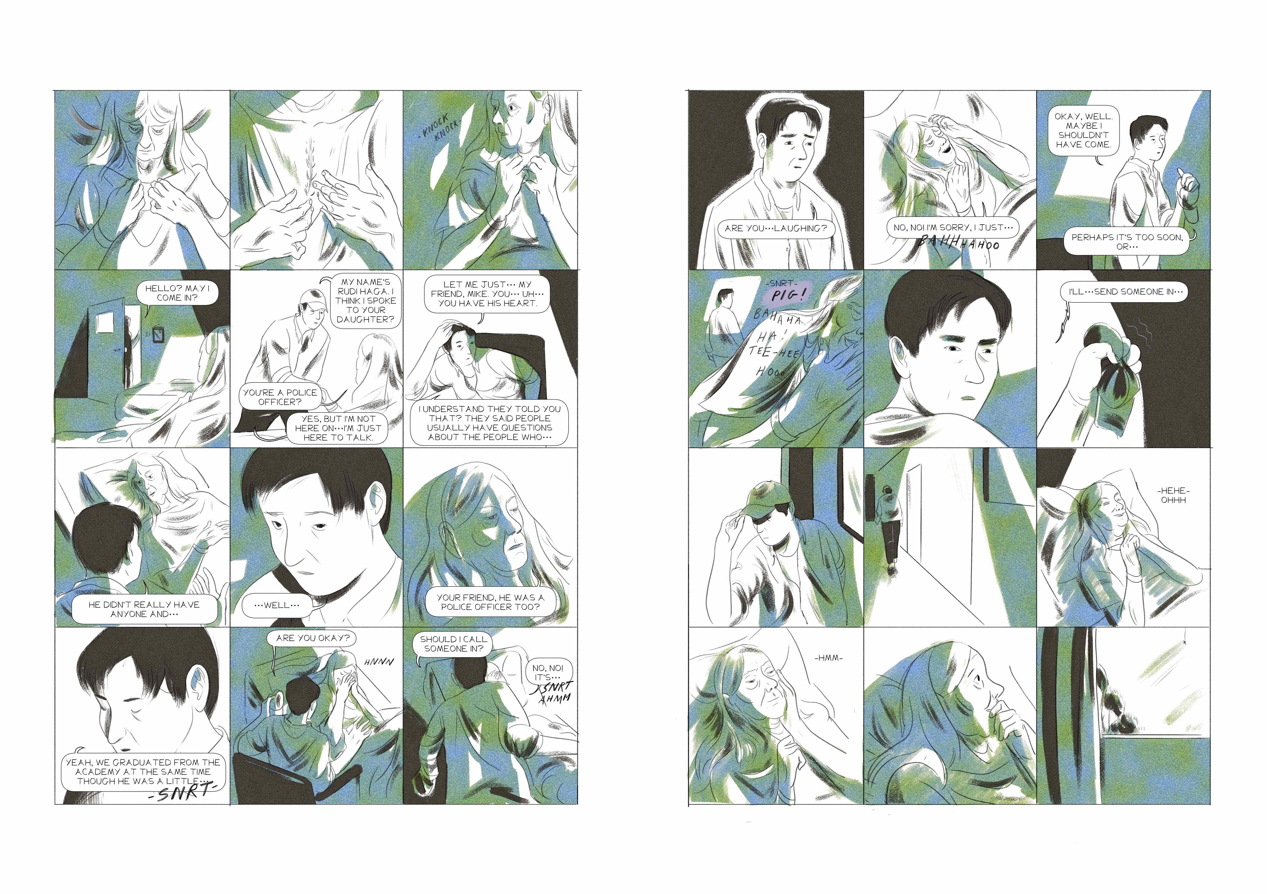I remember the day I landed on the pig punchline. It made me laugh because it surprised me, but it also felt like that’s where things had been heading all along. Even then, I wasn’t sure whether I’d include it. Maybe it would ruin the semi-serious tone. In the end, I think it works because it was a genuine surprise to me—as I hope it is to the reader. I wasn’t sure how obvious to make it. There was a line I was trying to walk. I don’t know if I pulled it off. Here’s the original next to the final page.