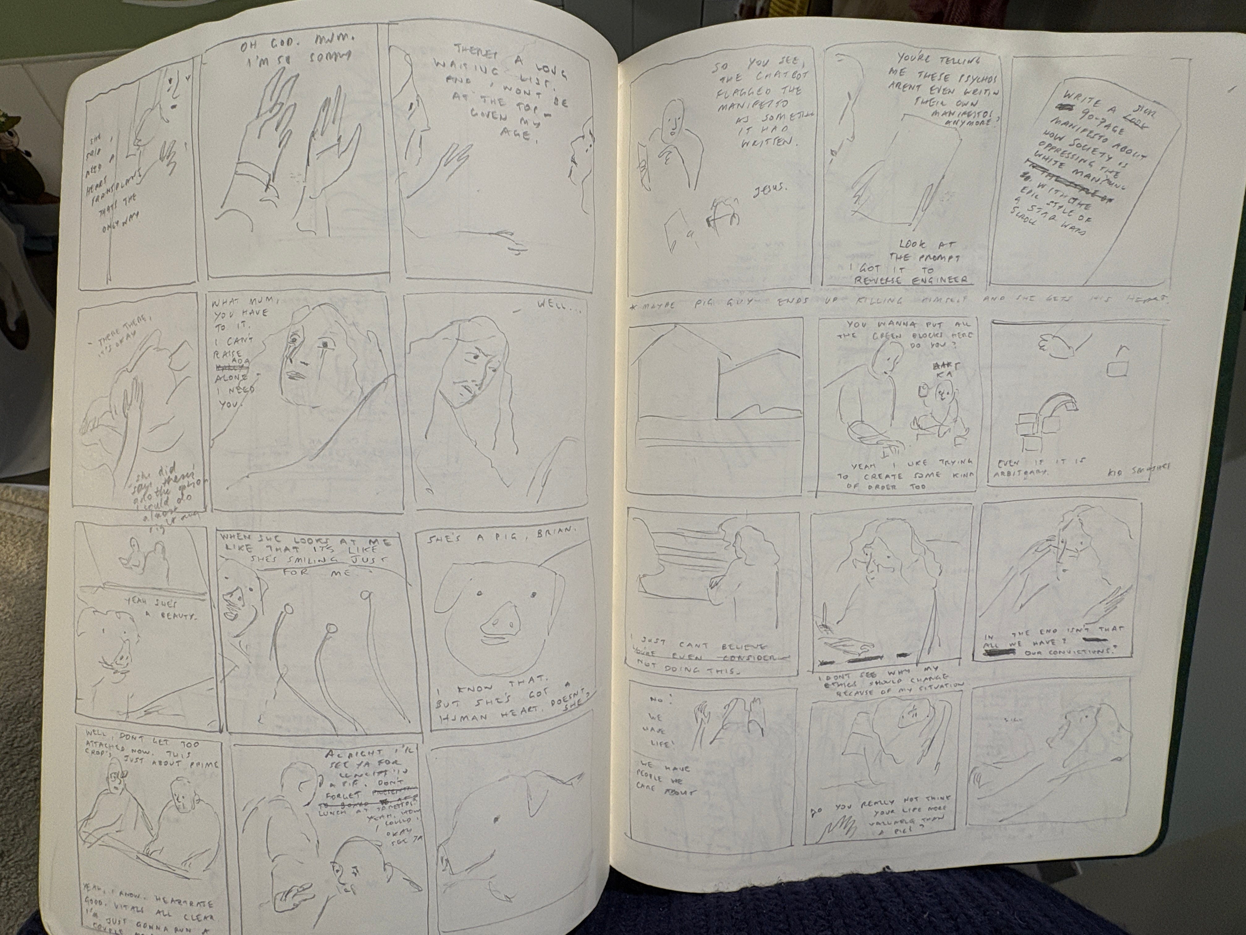 The other idea came from reading about pig-to-human heart transplants—growing a human heart inside a pig, to be harvested. I had a lot of questions, but my main one was: what about the pig? And what if you needed a transplant but had ethical objections—say, you were vegan?